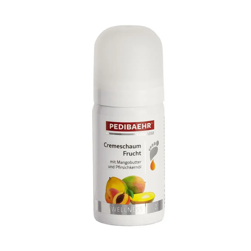 Знайдіть ідеальний догляд для пошкодженої, сухої та потрісканої шкіри стоп! Фруктова крем-піна BAEHR Cremeschaum Frucht забезпечує ефективну регенерацію та глибоке зволоження. Поєднання олій манго і персика, пантенолу та гліцерину допомагає загоїти пошкодження та повернути відчуття комфорту. Сечовина (5%) підвищує вологоутримуючі властивості епідермісу та сприяє глибокому проникненню активних інгредієнтів. Це ідеальний варіант для застосування при діабетичній стопі. Крем-піна пом’якшує шкіру, швидко всотується.