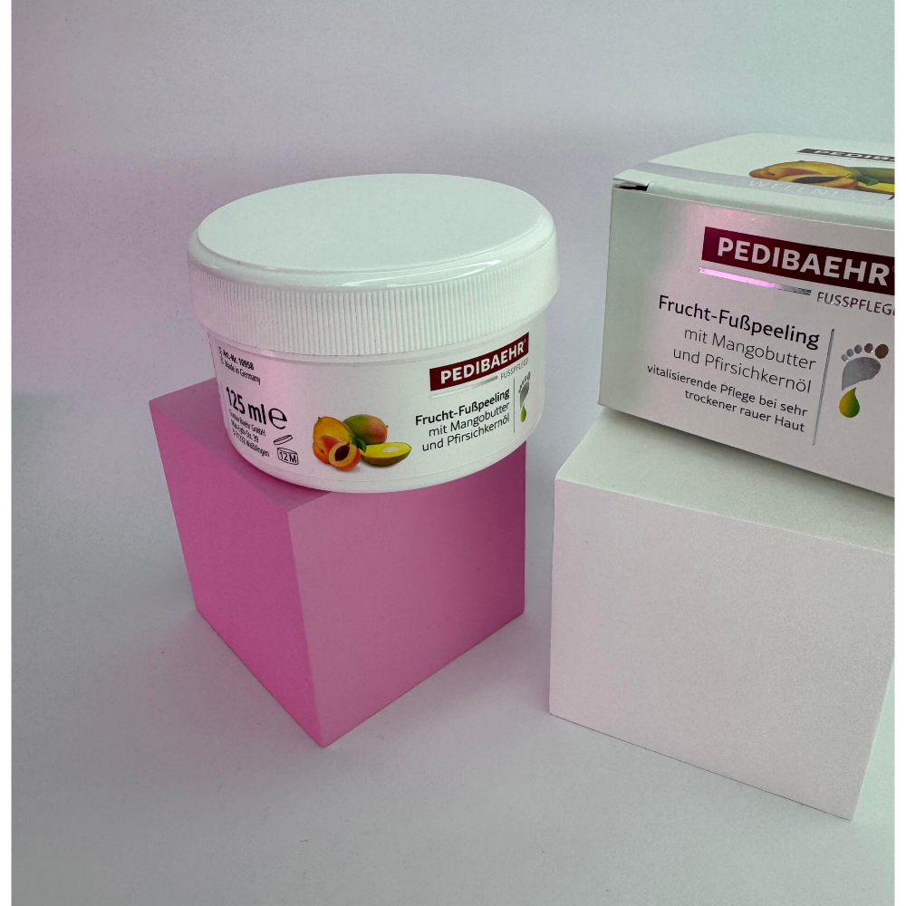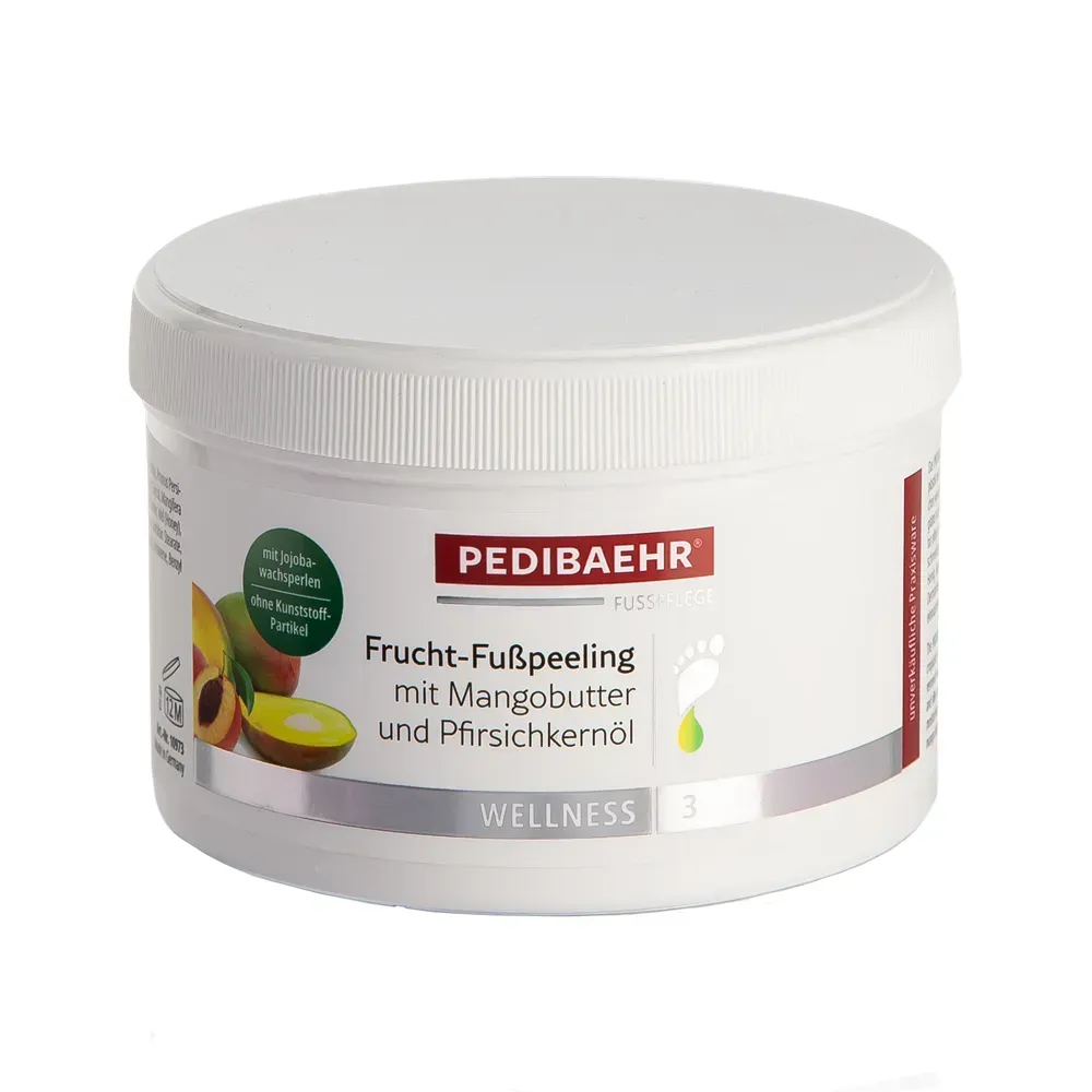 Пілінг фруктовий для ніг з маслом манго та персиковою олією, BAEHR FRUCHT-FUSSPEELING PEDIBAEHR: фруктовий пілінг для ніг з манго, персиком та 5% сечовиною.