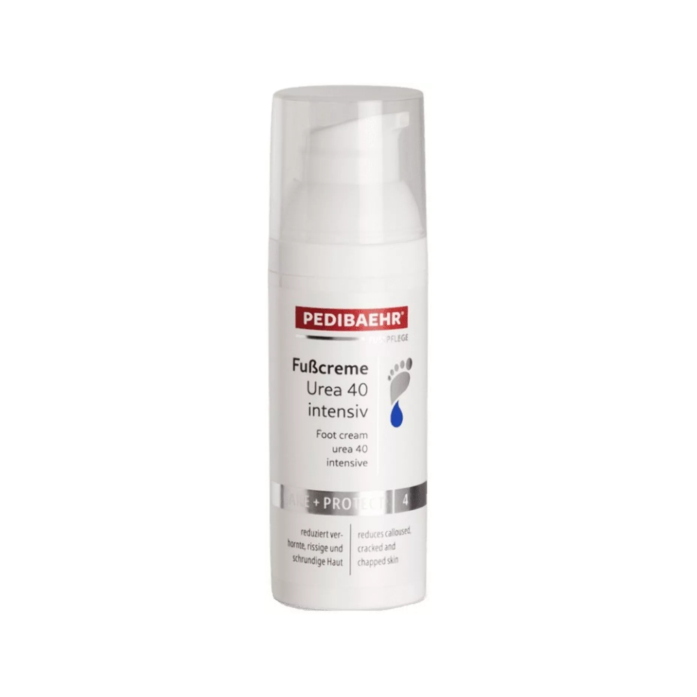Крем для ніг інтенсивний з 40% сечовиною, BAEHR (50мл): інтенсивне пом’якшення, проти гіперкератозу. Знайдіть інтенсивне рішення для дуже затверділої та сухої шкіри стоп! Крем Pedibaehr Urea 40% містить концентровану сечовину (40%), яка забезпечує сильний кератолітичний ефектрозчиняє верхній роговий шар, ефективно протидіючи гіперкератозу. Лактат натрію та гліцерин інтенсивно зволожують, а пантенол заспокоює шкіру, зміцнюючи її бар’єр. Крем ідеально підходить для догляду за сильно ороговілими ділянками.