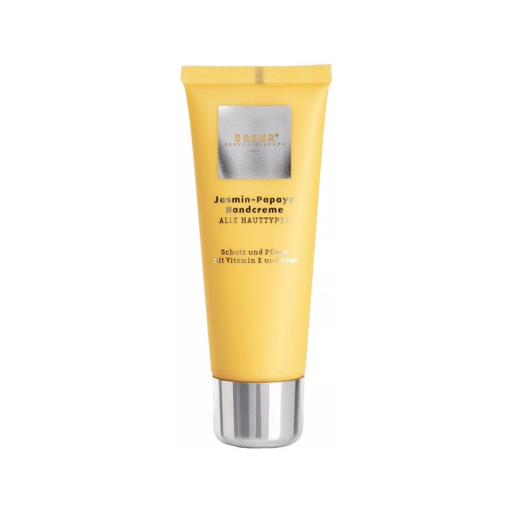 Побалуйте свої руки розкішним доглядом! Цей крем для рук активно відновлює, пом’якшує та зволожує суху шкіру. Відчуйте оксамитову м’якість одразу після нанесення! Крем для рук Baehr Beauty Concept Jasmin-Papaya пропонує найкращий догляд завдяки багатій на вітаміни та зволожувальній комбінації активних інгредієнтів. Сечовина, гліцерин і сорбітол інтенсивно зволожують, створюючи міцний шкірний бар’єр. Цінні компоненти папаї, бісаболол та вітамін Е швидко відновлюють шкіру. Крем робить натруджені, огрубілі руки м’якими та еластичними. Екзотичний аромат жасмину і папаї чудово освіжає почуття.