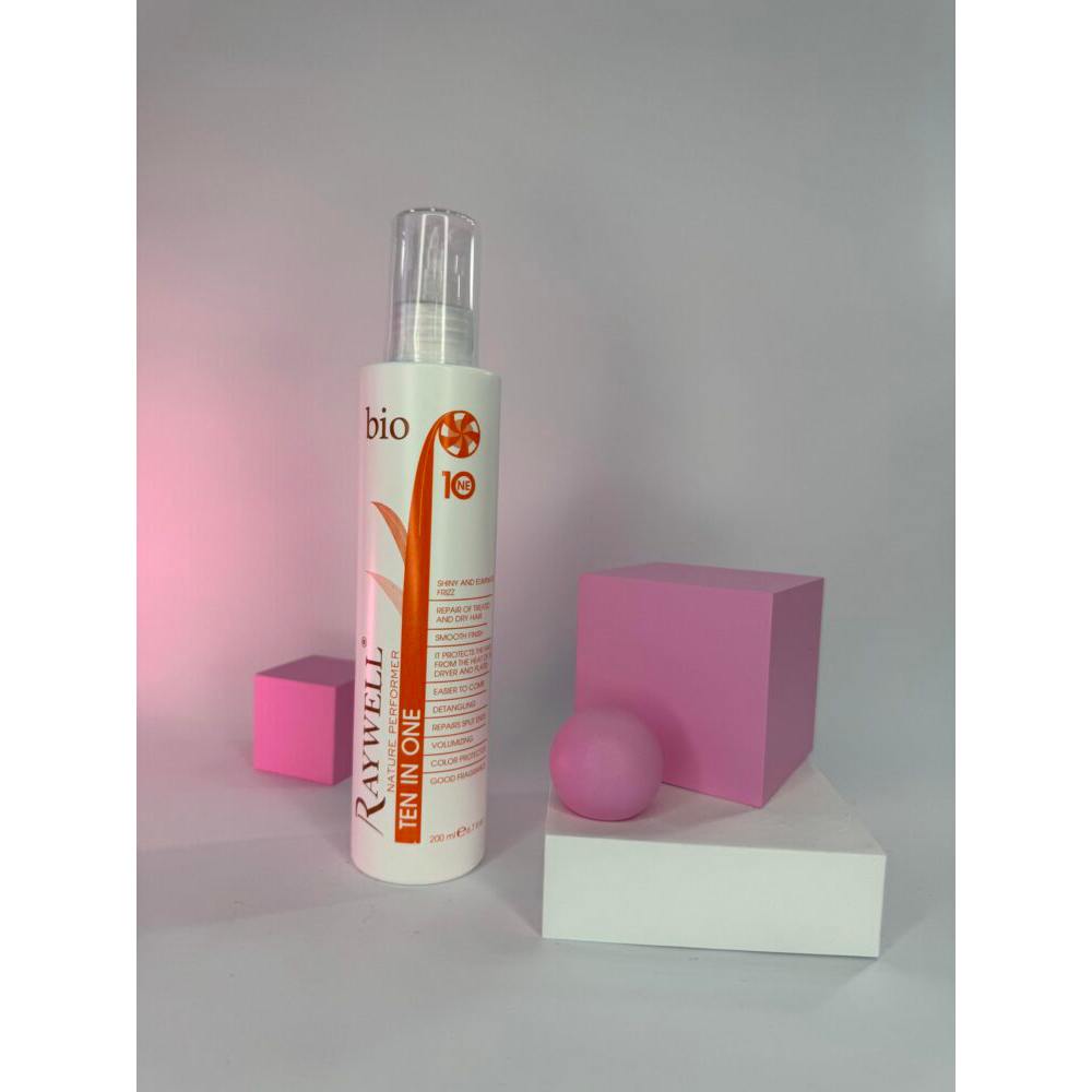 Крем-термозахист Raywell bio TEN IN ONE (10 в 1): блиск, об’єм та захист від високих температур.