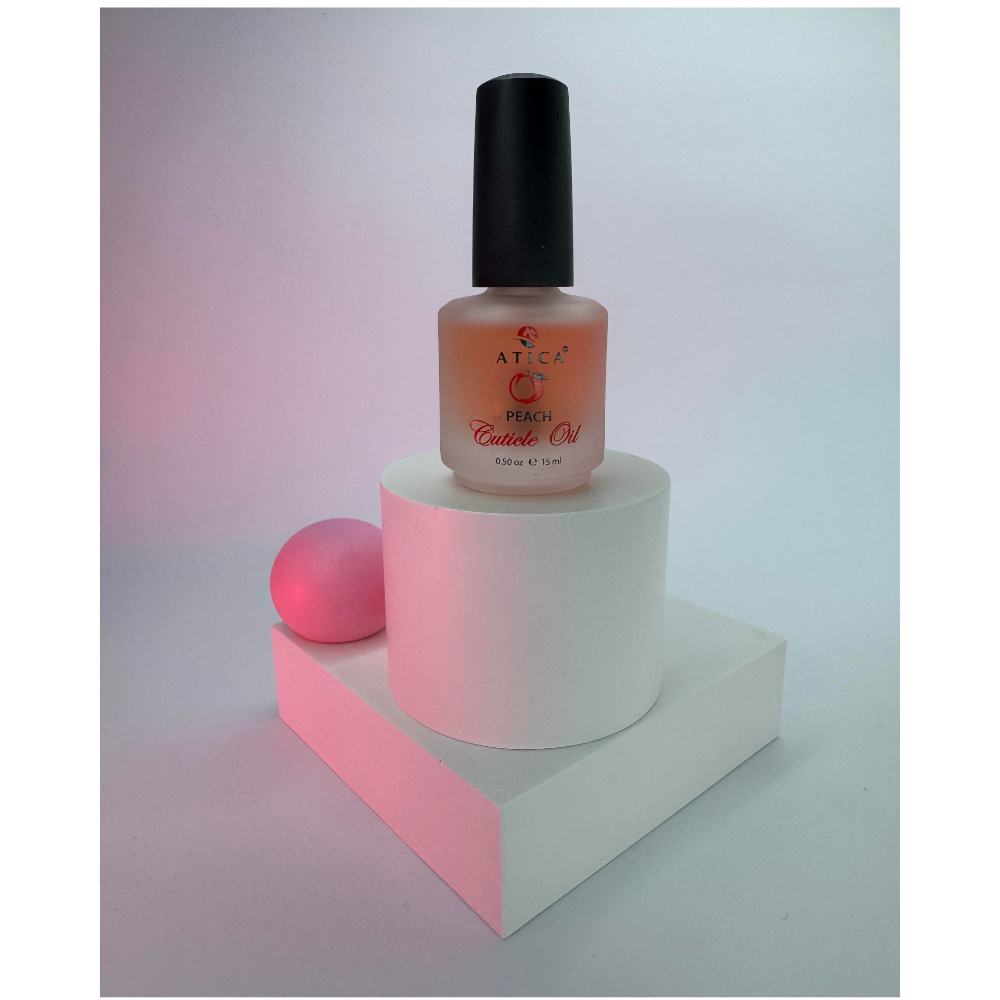 Олія для кутикули Персик, ATICA (15мл): зволоження, пом’якшення та захист від задирок.
