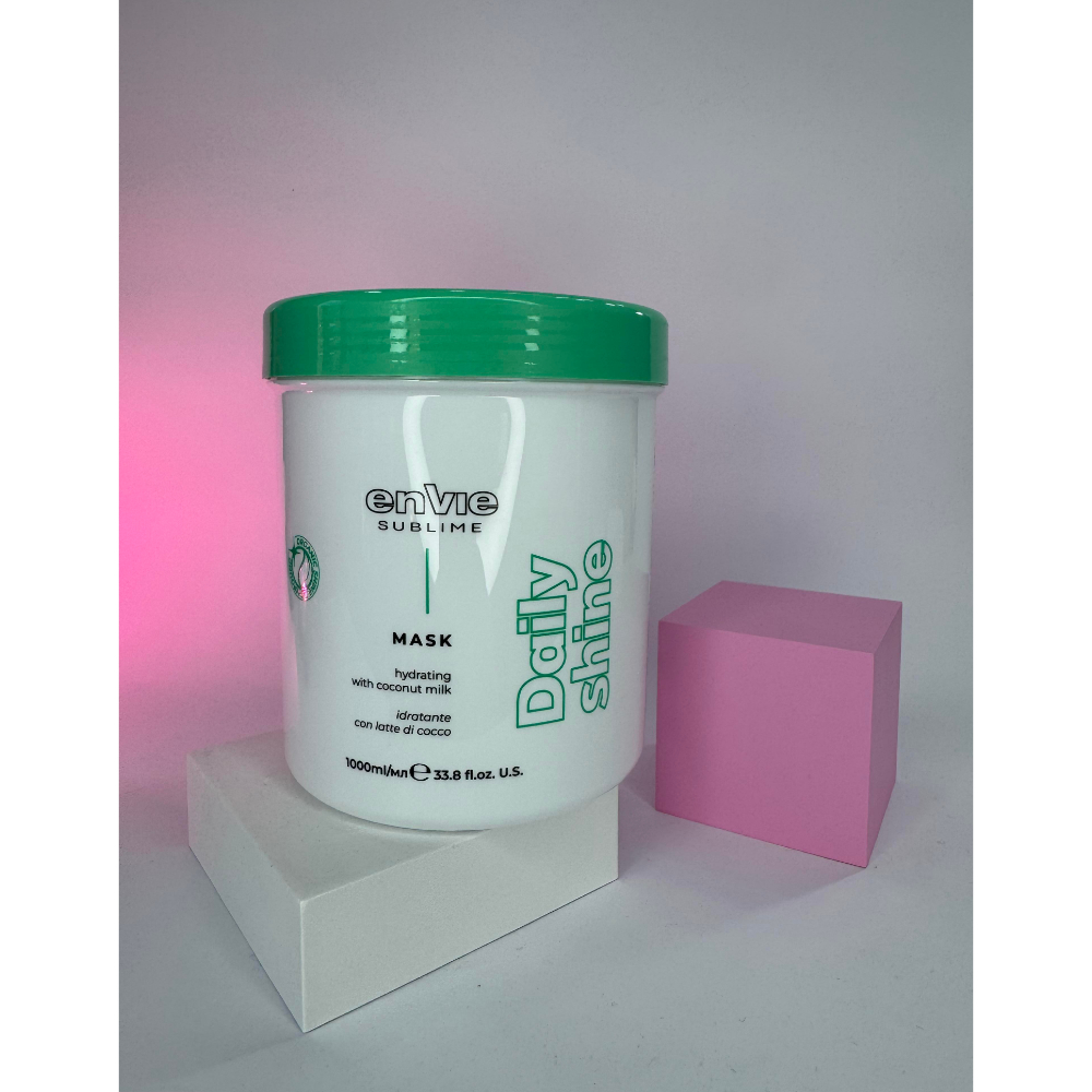 Щоденна поживна маска для волосся Envie Luxury Daily Shine ( 1000 мл): Збагачена натуральними екстрактами, оліями та пантенолом. Відновлює блиск, структуру, еластичність та життєву силу волосся. Забезпечує глибоке зволоження для здорового вигляду локонів.